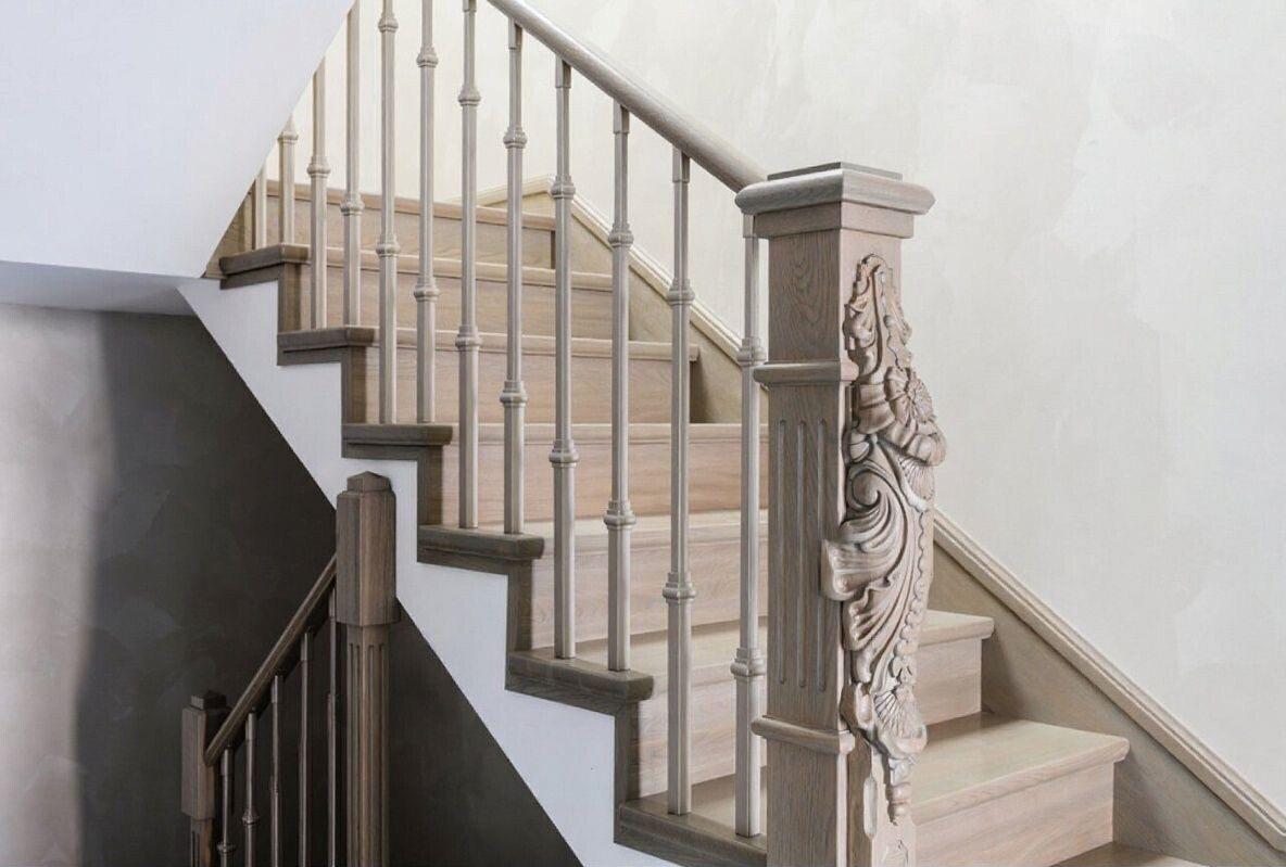 Теплый бук, классическое ограждение и мягкая подсветка